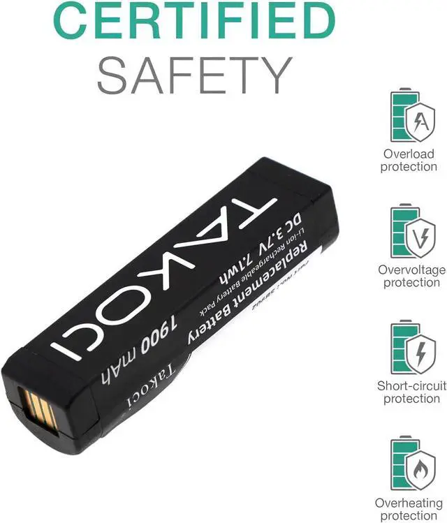 Battery SpecificationsCapacity:1900mAh/7.10Wh;Volt:3.7V;Battery type:Li-ion;Dimension: 72.50 x 18.90 x 18.70mm.