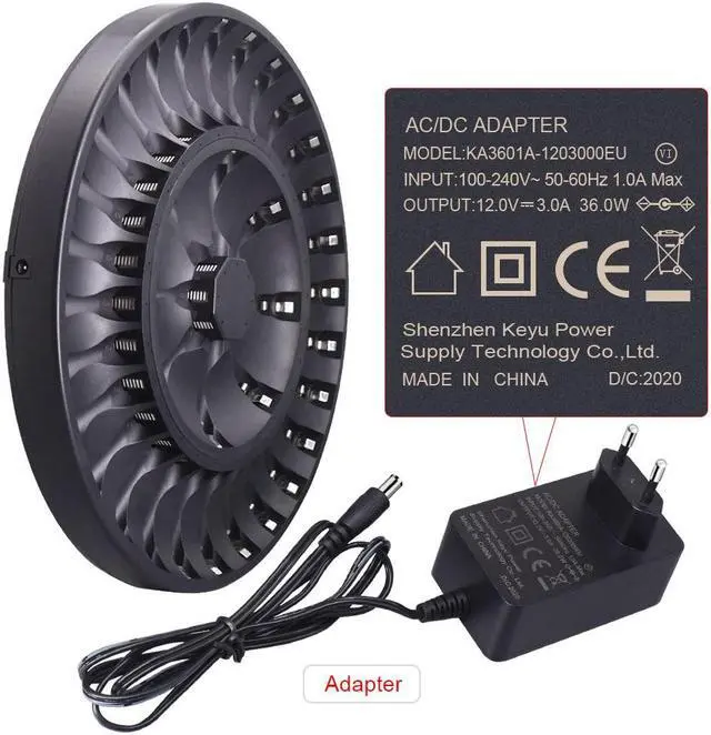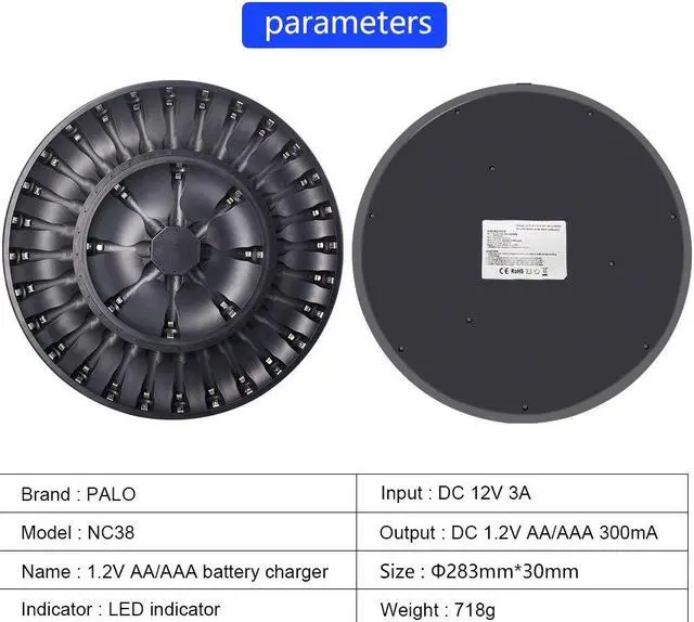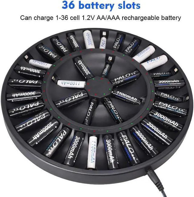 36 Bay smart AA AAA Battery Charger with Smart LED Light and AC plug cable, for 1.2V NIMH NICD Rechargeable Batteries
