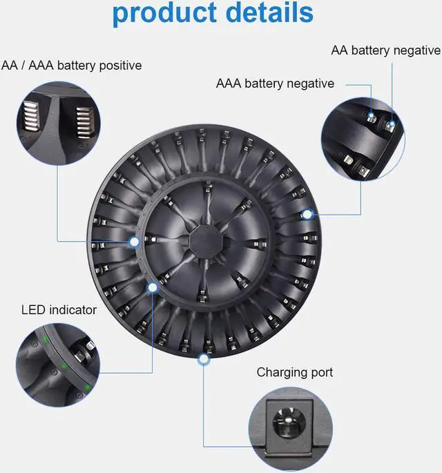 The round design NI-MH battery charger:space-saving shape . This double a and triple a battery charger is quick and easy to use, and it saves me a lot of money by allowing me to use rechargeable batteries instead of one-time use disposable ones all the