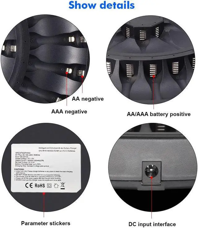 Individual Fast Battery Charger:36 independent charging channels individual charging and detection, 1-36 pack AA & AAA, NIMH/ NICD can be mixed when charging