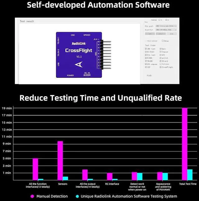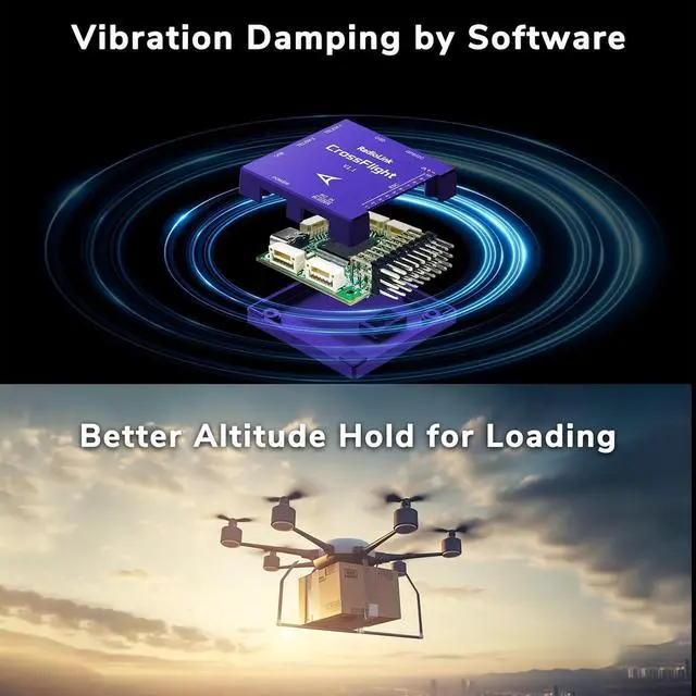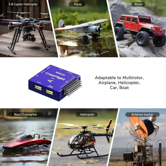 OSD MODULE INTEGRATED -- CrossFlight can graphically display OSD information without the need for an external OSD module, such as flight mode, distance, GPS stars, longitude and latitude, vertical speed, magnetic deviation, current time, battery voltage, current, wind speed, return route, exact route, vibration status, direction, etc. EASIER SETUP -- Do not need complicated settings for beginner and professor players, set parameters by Radiolink Mission Planner, ArduPilot Mission Planner, and QGC Mission Planner. The CrossFlight only can upgrade the firmware by Radiolink Mission Planner, and only can upgrade the firmware from Radiolink.