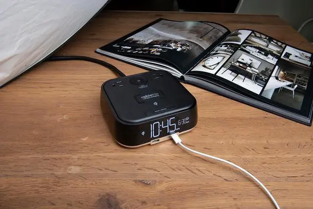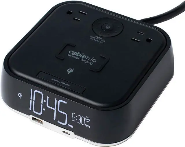Easy to Use and to Set Alarm Clock simple one button press and turn designQi Wireless Charging - charge your smart phone cord free2 110v Tamper Resistant Power Outlets - built in shutters to prevent foreign objects from being inserted into the outlet