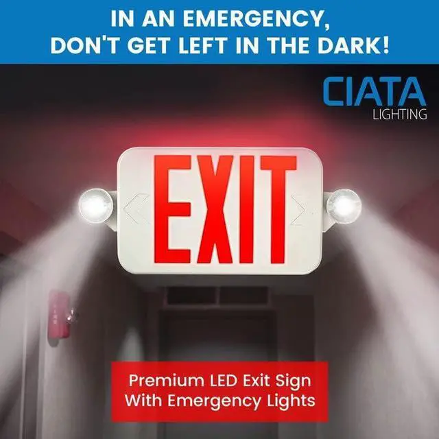 EASY TO INSTALL - Ciata Emergency Exit Sign can be ceiling or wall mounted with instructions. Quick connect back plate fits standard junction boxes for surface mounting. Equipped with two glare-free LED lights and universal voltage compatibility. WEAR RESISTANT - Stay protected with our fire-resistant Emergency Light fixture. Made of durable thermoplastic ABS material, it's 5VA flame-retardant and won't spread fire. This product is also covered by our 1-year warranty.