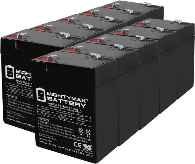 ML4-6 SLA is a 6V 4.5AH Sealed Lead Acid (SLA) rechargeable maintenance free battery, Pack of 10 - UL CertifiedDimensions: 2.76 inches x 1.89 inches x 4.21 inches. Terminal: F1. Listing is for the Battery only. No wire harness or mounting accessories includedSLA / AGM spill proof battery has a characteristic of high discharge rate, wide operating temperatures and long service life.