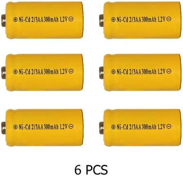 • 6-Pack 2/3 AA NiCd 300 mAh Button Top Batteries
