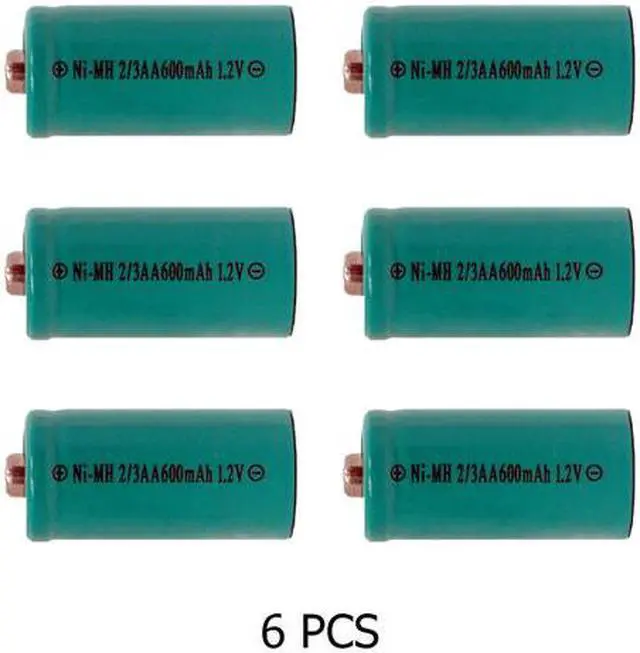 Size: 2/3 AA Capacity: 600 mAh Chemistry: Nickel Metal Hydride (NiMH) Voltage: 1.2 Volt Length: 29 mm ( 1.2" ) Diameter: 14 mm ( 0.55" ) Quantity: 6 pcs