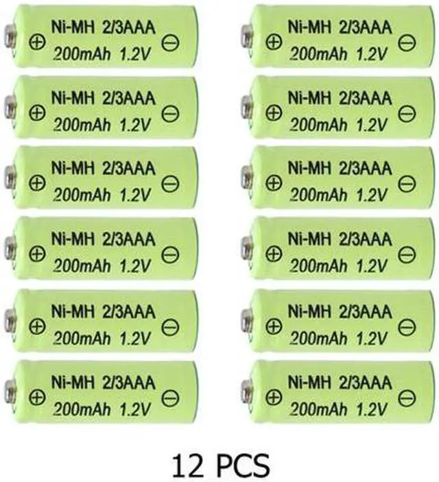 • 12-Pack 2/3 AAA NiMH 200 mAh Button Top Batteries