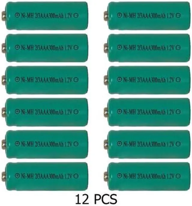 • 12-Pack 2/3 AAA NiMH 300 mAh Button Top Batteries