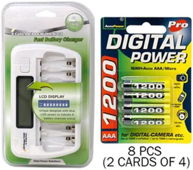 Output: AA 1.2V x 8 - 500mA, AAA 1.2V x 8 - 250mA