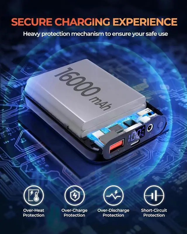 12HRS Working Time: 16000 mAh capacity, provides 4-12 hours of long-lasting warmth for 7.4V /5V heated vests, designed for most heated vests, heated jackets, and heated hoodies. Can fully charge iPhone 15 about 4 times.
