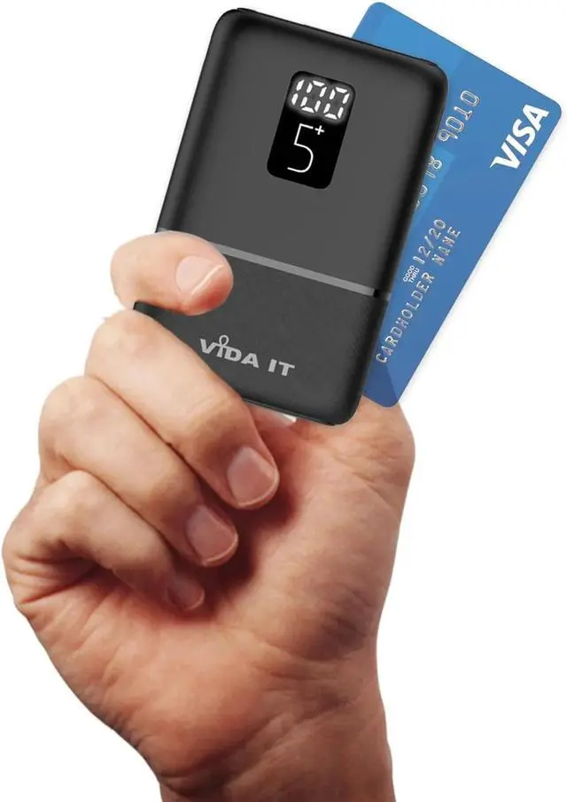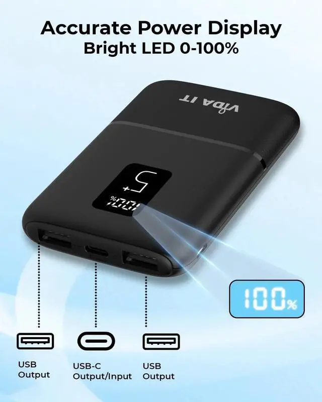 Mini USB Battery Charger: Small rechargeable powerpack, ultra lightweight portable charger pocket size, and only 15mm ( 0.59 Inches) in thickness. It features dual USB ports plus a USB-C for cell phones. Compatible with iPhone, Samsung Galaxy, Motorola, Google Pixel and other Android Phones.