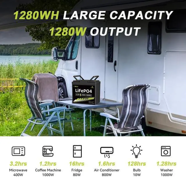 - [Advanced Technology]100ah lithium batteries 12v are made from 100% safe, non-toxic, non-hazardous energy and are highly chemically stable;they are not prone to thermal runaway. As there is no acid in Lifepo4 battery, you are able to install them safely anywhere.