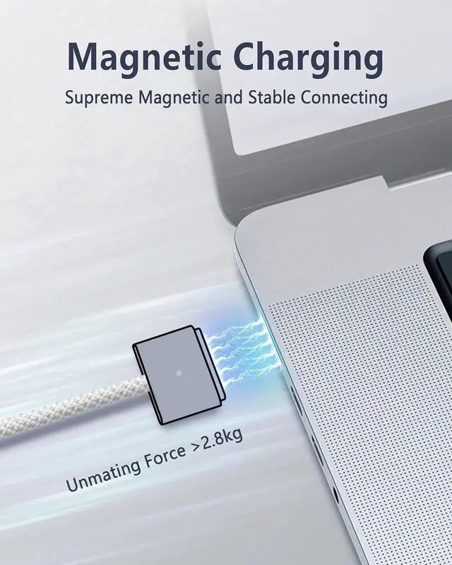 The magnetic design of this cable ensures that it attaches easily and securely to your Mac-Book, preventing accidental disconnections, and making it a breeze to connect and disconnect.