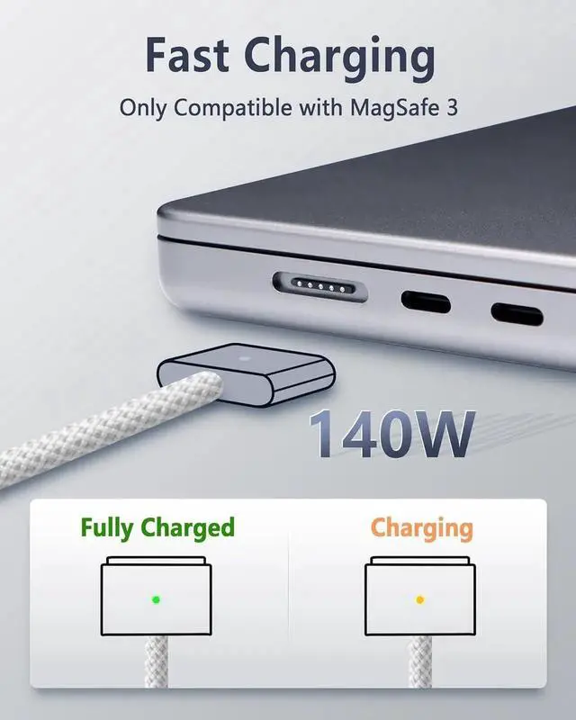 Compatible with Macbook:This USB-C to Magnetic 3 Cable only Compatible with MacBook Air (13-inch, M4, 2025),MacBook Air (15-inch, M4, 2025),MacBook Pro (14-inch M4,2025), MacBook Pro (16-inch M4,2025),MacBook Air (13-inch M3,2024), MacBook Air (15-inch M3,2024),MacBook Pro (14-inch, M2, 2023), MacBook Pro (16-inch, M2, 2023), MacBook Air (15-inch, M2, 2023), MacBook Air (13-inch, M2, 2022), MacBook Pro (14-inch, 2021), MacBook Pro (16-inch, 2021),Please check your computer model to make sure it matches the charging cable.