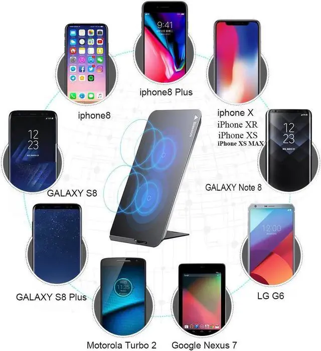 Applicable Devices: Fast charge modes ( 1.4 times faster than standard wireless charger stand) only available for the Samsung Galaxy Note 8, Note 5, S6 Edge+, S7 and S7 Edge. Other Qi-enabled devices such as iPhone 8, 8 Plus, iPhone X / XR / XS / XS MAX, Samsung S6, S6 Edge, Nokia 9, Nexus 5/6 will charge at standard speed. Those phones without Qi-function need an additional qi wireless receiver (Not included).