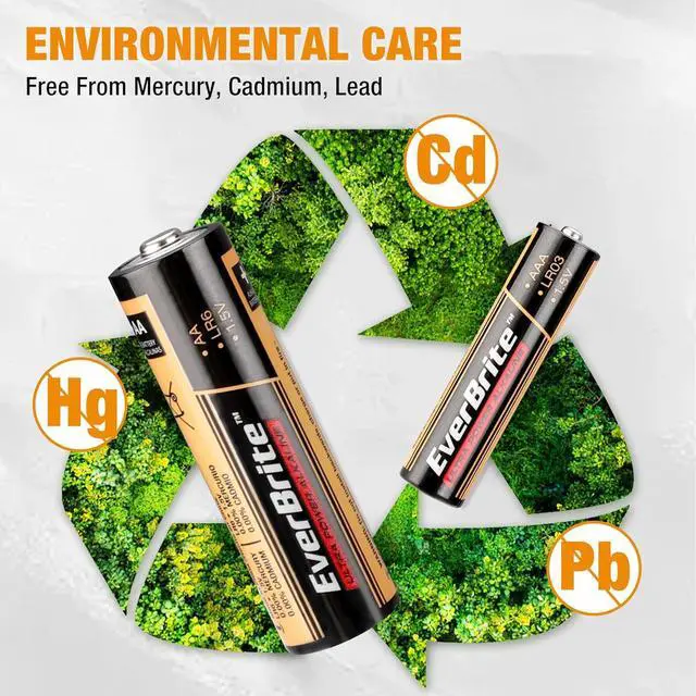 Environmentally Friendly: EverBrite batteries contain no mercury or cadmium, making them a responsible choice for both your devices and the planet.