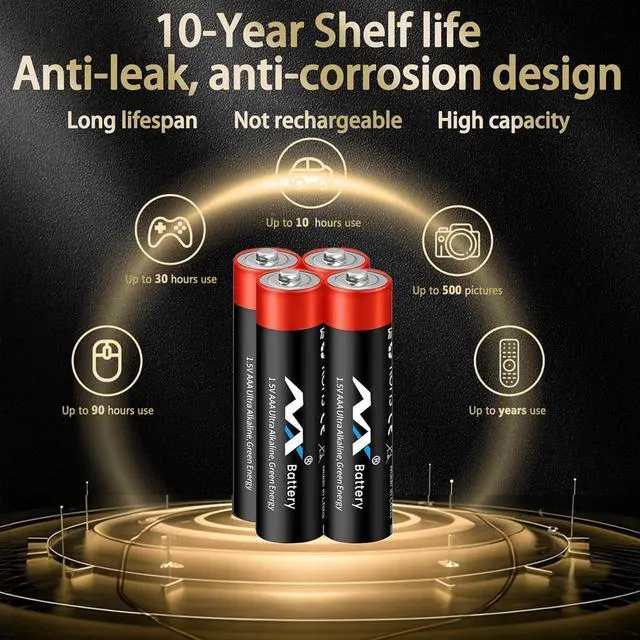 10-Year Shelf Life: Don' t worry about battery acid leaks with 10-year leak-free shelf life, keeping your electronic devices ready to go anytime. (All AAA batteries have been date coded to guarantee freshness)
