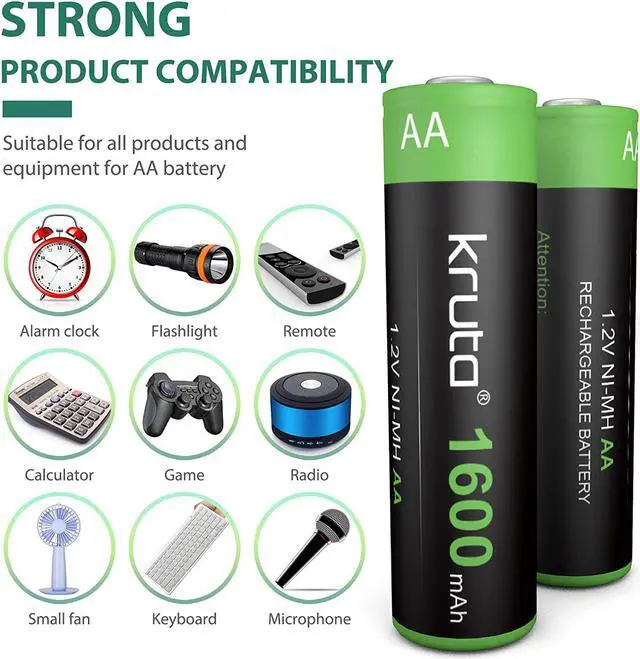 How to Charge: Kruta 1600mah Rechargeable AA batteries can be charged via solar cell lights or standard charging units. For quicker charging time or when sunlight is dim, use a qualified universal battery charger.