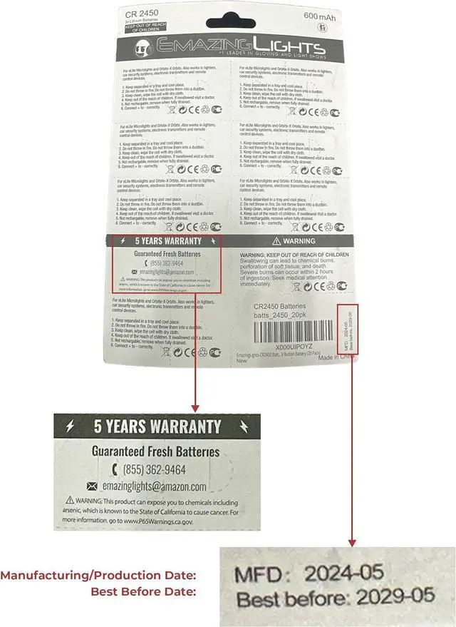 LONG LASTING: Our cr 2450 3v has a 5 year shelf life. These powerful cr-2450 batteries have a long charge for compatible devices