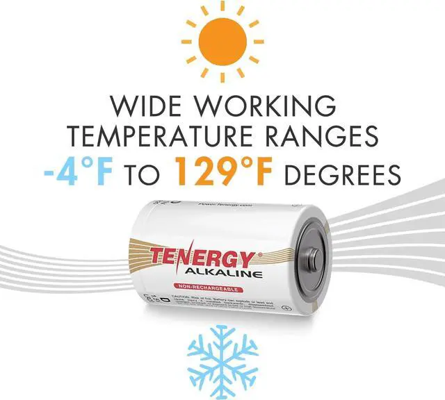 Batteries D size can be used in temperatures as low as -4°F degrees or as high as 129°F degrees.