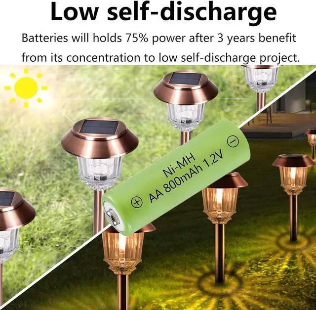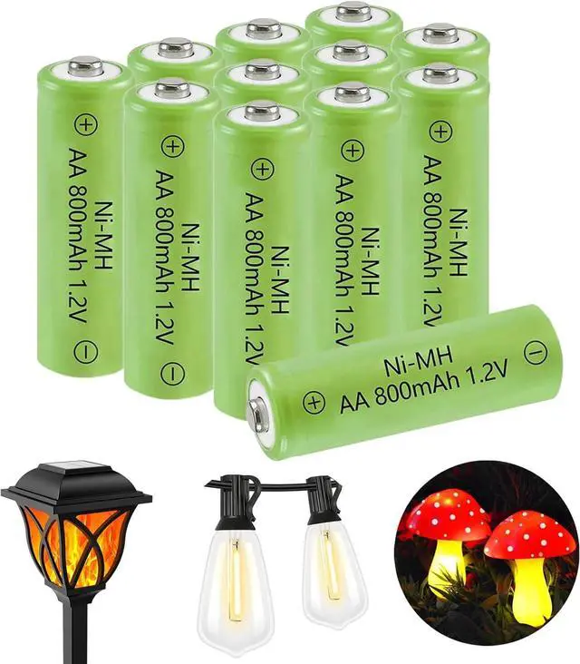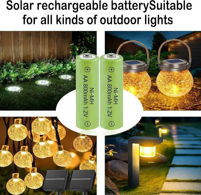 Package included: 12x NiMH AA800mAh 1.2V rechargeable batteries, designed specifically to power outdoor solar lights