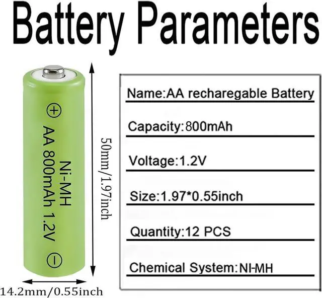 Dimensions: AA Size( 14.2 *50 mm), low self-discharge batteries, confirm the battery size before purchasing and please make sure your device is suitable for AA 1.2 v batteries