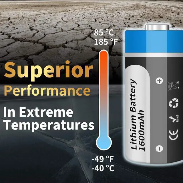 10 YEAR SHELF LIFE - Low self-discharge rate ensures AHJ CR123A battery cell up to 10 year shelf life (self-discharge rate1% in normal storage, without any memory effect), don' t worry about the CR123A 3V battery will expire and waste your money. Great performance during extreme weathers ranging from -49 °F to 185 °F / -40 °C to 85 °C.