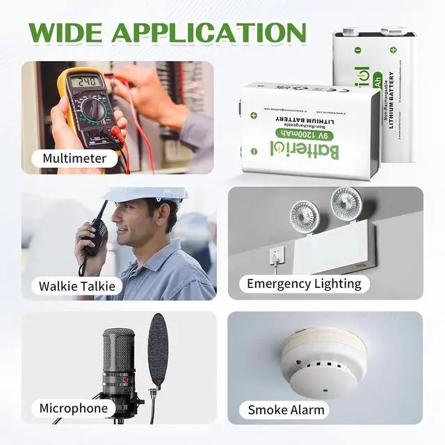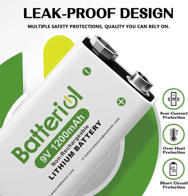 - Batteriol 9V batteries feature a long-lasting 1200mAh capacity and consistent 9V output, necessitating fewer replacements compared to smaller cells. They are thus an outstanding choice for various applications. (These batteries are non-rechargeable)