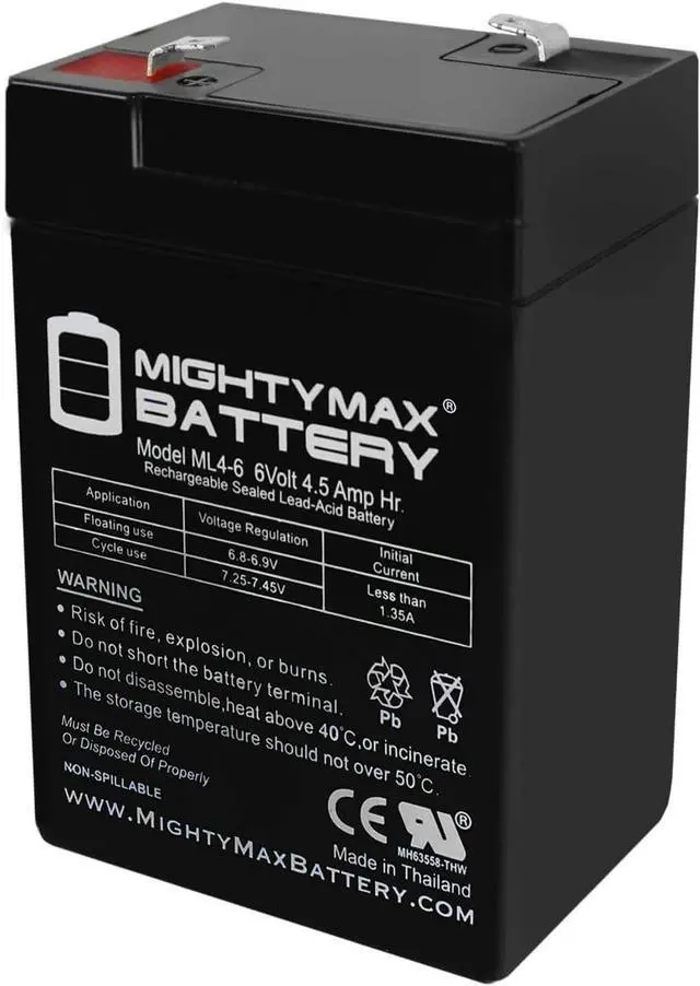 ML4-6 SLA is a 6V 4.5AH Sealed Lead Acid (SLA) rechargeable maintenance free battery - UL Certified