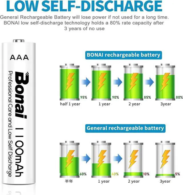 Low Self-discharge: It will still maintain 80% of initial capacity after 3 year of non-use, its highly recommended to be fully charged every 3 months