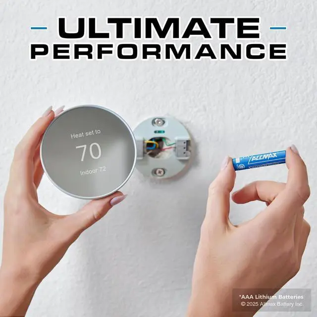 Ultimate Performance Allmax AAA Lithium Batteries perform extremely well with highest drain devices and in a wide variety of temperatures ranging from -40°F to 140°F, so they work well in either hot or cold environments. Allmax AAA Lithium Batteries are perfect for electronic devices such as remote controls, smart door locks, flashlights, LED headlamps, outdoor thermometers, refrigerator thermometers, smoke detectors, wireless mice, radios, walkie-talkies, clocks, and more!