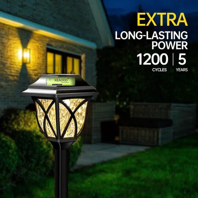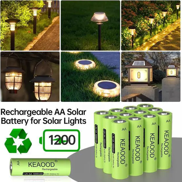 High Capacity AA Solar Batteries: 1.2V Ni-MH AA Rechargeable Batteries provide a reliable and long-lasting power for your outdoor solar garden lights. Offering a real 1000mAh capacity, they ensure your Outdoor Solar lights illuminate your space brightly until dawn.