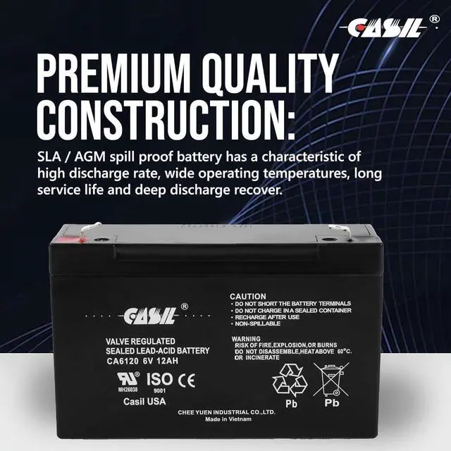 6v 12ah Rechargeable Battery: SLA / AGM spill proof battery has a characteristic of high discharge rate, wide operating temperatures, long service life and deep discharge recover.