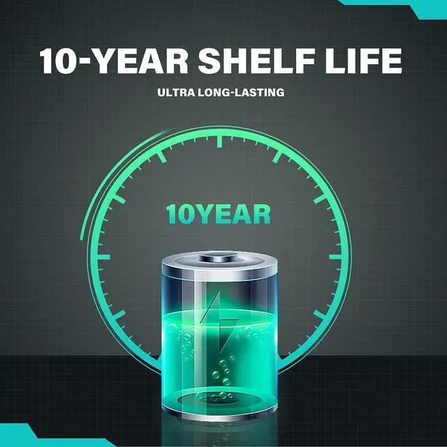 Extended Shelf Life: Enjoy a 10-year shelf life, ensuring your batteries are ready when you need them.