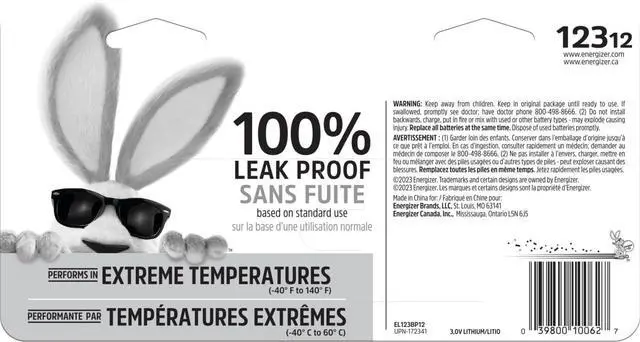 12 pack of Energizer Photo 123 Lithium Batteries provides serious power for your high tech devices