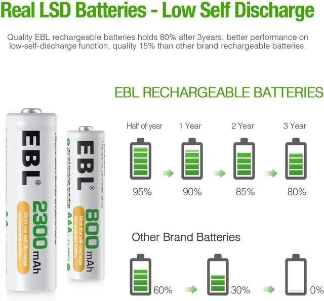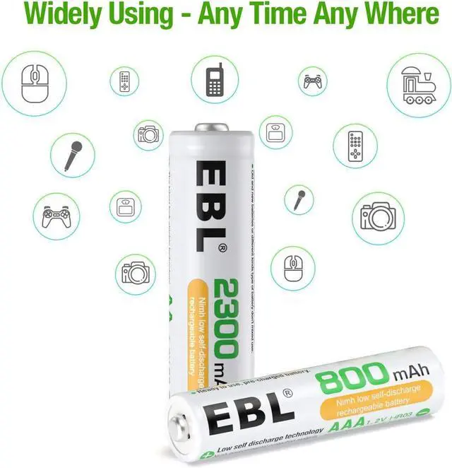 Package: 8 Counts AA 2300mAh rechargeable batteries + 8 Counts AAA 800mAh rechargeable batteries.