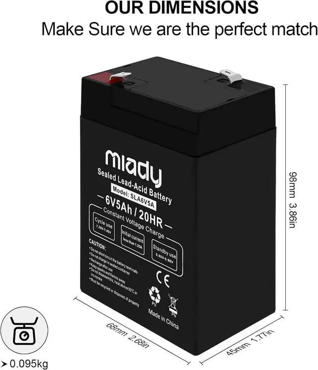 Maintenance-free & DimentionMiady 6v 5ah battery can last a long time, which is also a rechargeable maintenance free battery.