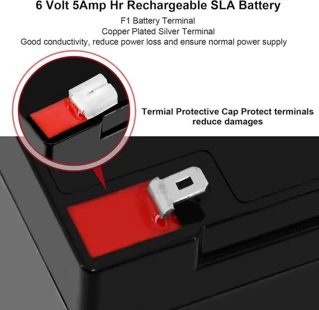 Complete ProtectionOur 6 volt 5 amp battery can be fully discharged and has stable performance. With Absorbed Glass Mat (AGM) Technology and Wide Temperature Range, and ABS Plastic Case provides strong resistance to shock, vibration and heat. And SLA / AGM spill proof battery has a characteristic of high discharge rate, wide operating temperatures, long service life and deep discharge recover