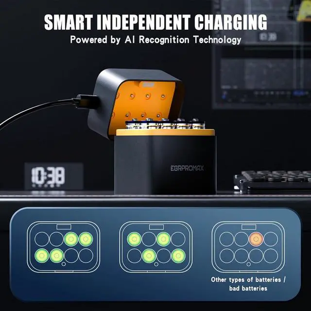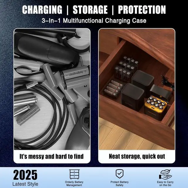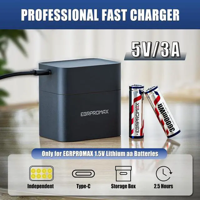 2.5 -Hour Fast Charging Always Ready When You Need ThemWith the included intelligent USB charger, all 8 batteries can be fully recharged in just 2.5 hours. Each slot charges independently, allowing you to charge any number of batteries at a time. A true time-saver for busy families, professionals, and tech users.