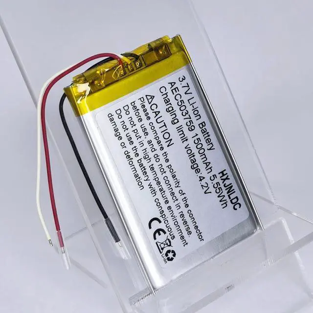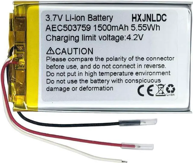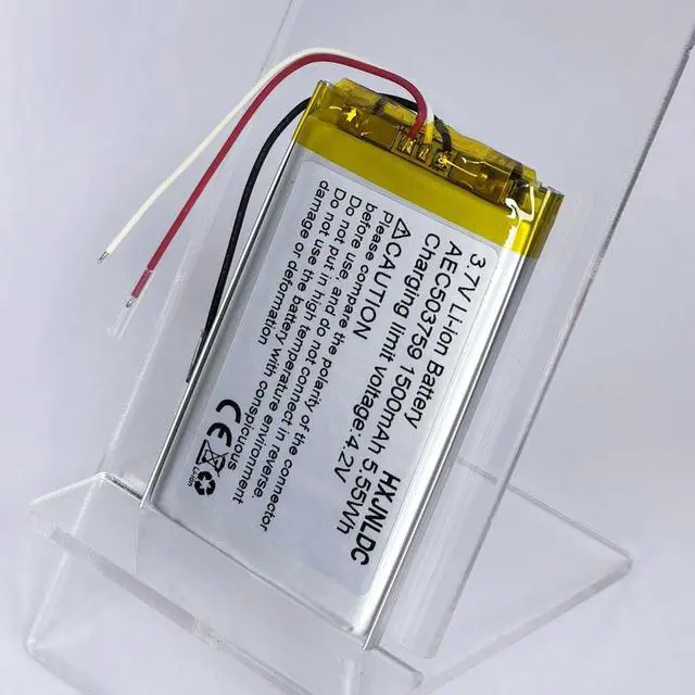 AEC503759 rechargeable lithium ion polymer battery, nominal voltage 3.7V, full charge voltage 4.2V, capacity 1500mAh, power 5.55W h, size 2.362 x 1.456 x 0.196 inch(60×37×5mm) (L*W*T), Weight: 0.794