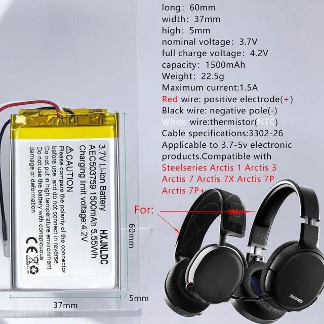 Compatible with Steelseries Arctis 1 Arctis 3 Arctis 7 Arctis 7X Arctis 7P Arctis 7P+ Wireless Gaming HeadsetIt can also be used in other 3.7 -5V electronic products with power less than 5.55W h (1500mAh).