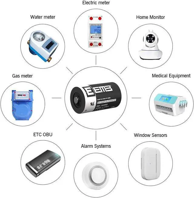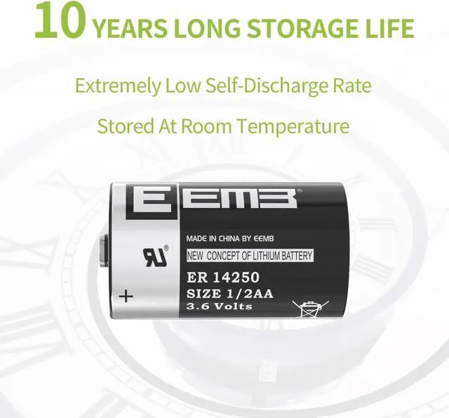 Basic Info 3.6V non-rechargeable 1/2 AA size lithium thionyl chloride battery; 1200 mAh; 14.5 *25mm/ 0.57 * 0.98 inch, wide range of temperatures -55°C to +85°C; most suitable for low power consumption devices. please check carefully if the ER14250 battery is the size you need for your electronic device before purchasing.