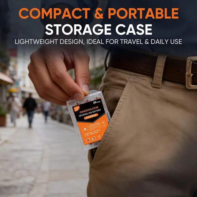 Easy to Access & Carry These zinc-air hearing aid batteries come in a square hard plastic case with a sturdy, crush-resistant structure that stays firm and stable when stacked. Individual compartments let you take only what you need, eliminating waste; seal up the rest and slip them easily into your pocket or pillbox for hassle-free on-the-go use.