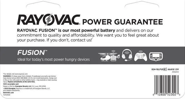 Premium Alkaline AAA Batteries, 16 Pack of Rayovac Fusion Batteries