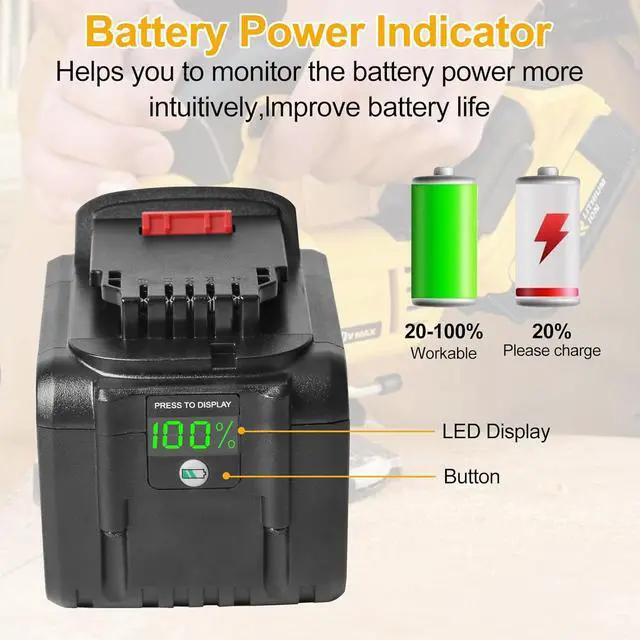 Extended Runtime: With high capacity of 9000mAh, extends the runtime of your 20v tools, allowing you to work more efficiently without frequent recharging interruptions