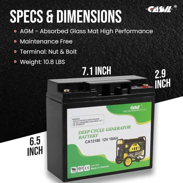 Dependable Generator Power: 12V 18Ah sealed lead-acid battery delivers consistent, long-lasting energy for home and portable generators.