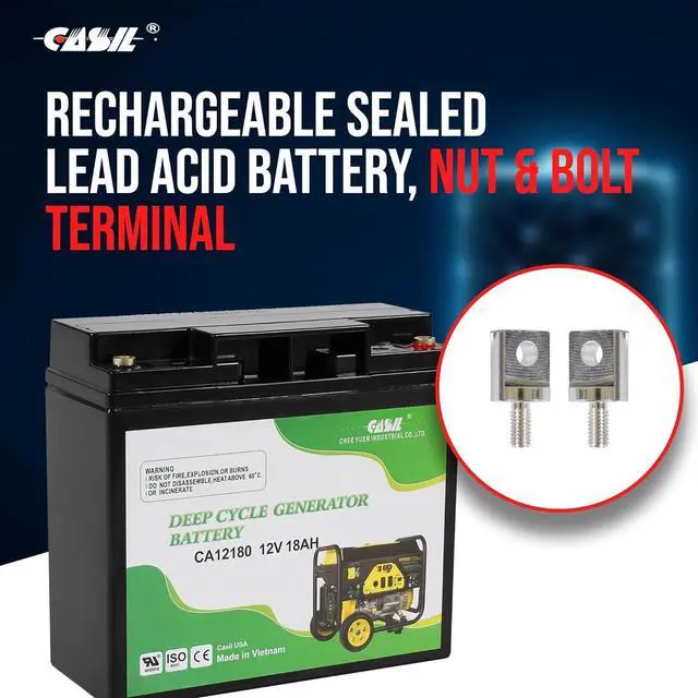 Direct OEM Replacement: Perfect fit for Champion, Generac, Duromax, and Briggs & Stratton generator models. Features nut & bolt terminals with terminal extension hardware securely stored inside the battery case.