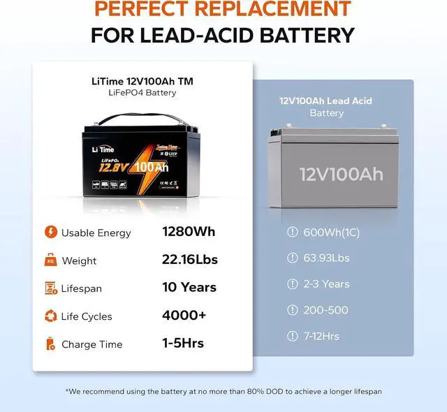 Less Fuss: Just 22.16 lbs in standard Group 31 size64% lighter than 12V 100Ah lead-acid batteries. Ltime 100ah lithium battery Lightens your boat for smoother, faster, more agile handling.