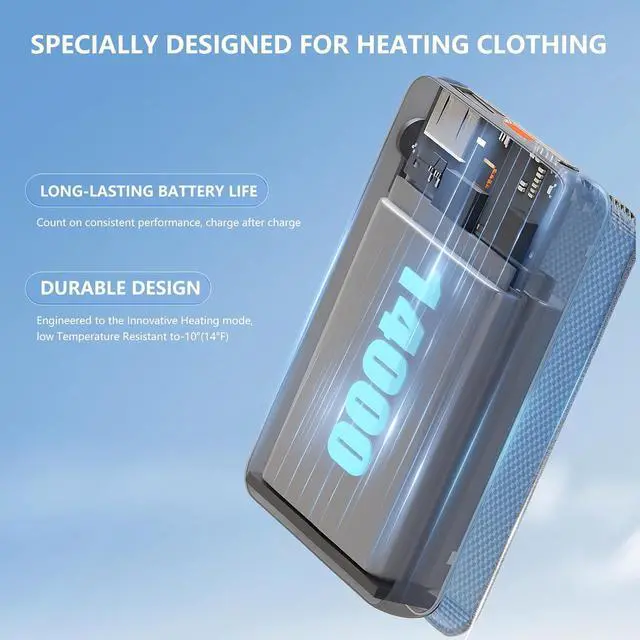 LONG-LASTING WARMTH & DEVICE POWER True 14, 000mAh capacity keeps heated clothing running up to 5 h (high), 8 h (medium), or 11 h (low) on a single charge, and doubles as a power bank for your daily tech. Fully charges an iPhone 13 up to 3× or an iPad Mini up to 2×ideal for travel, work, and outdoor adventures