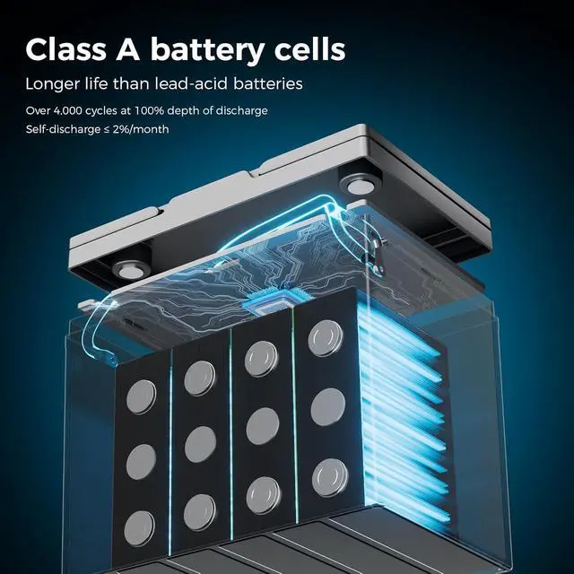 Premium A+ Grade Cells & 6000+ Deep CyclesDyness LiFePO4 Battery engineered with top-tier A-Grade LiFePO4 cells, which delivers exceptional longevity, higher power density, and inherent safety.